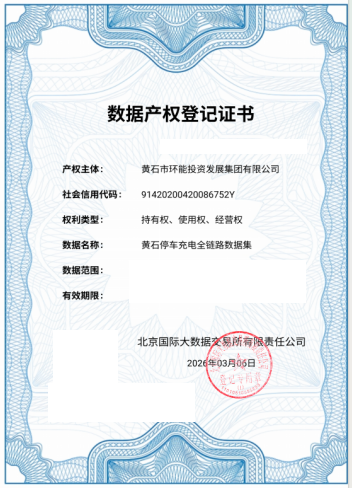 近日,环能集团“黄石停车充电全链路数据集”成功通过北京国际大数据交易所(北数所)数据产权登记审核,获颁数据产权登记证书,成为城发集团内首例实现数据资产入表的项目。这一突破不仅标志着集团在数据资产化进程中迈出关键一步,更以“可计量、可管理、可交易”的数据资产形态,为城市公共服务领域数据要素价值释放和数字化转型提供了可复制的实践样本。